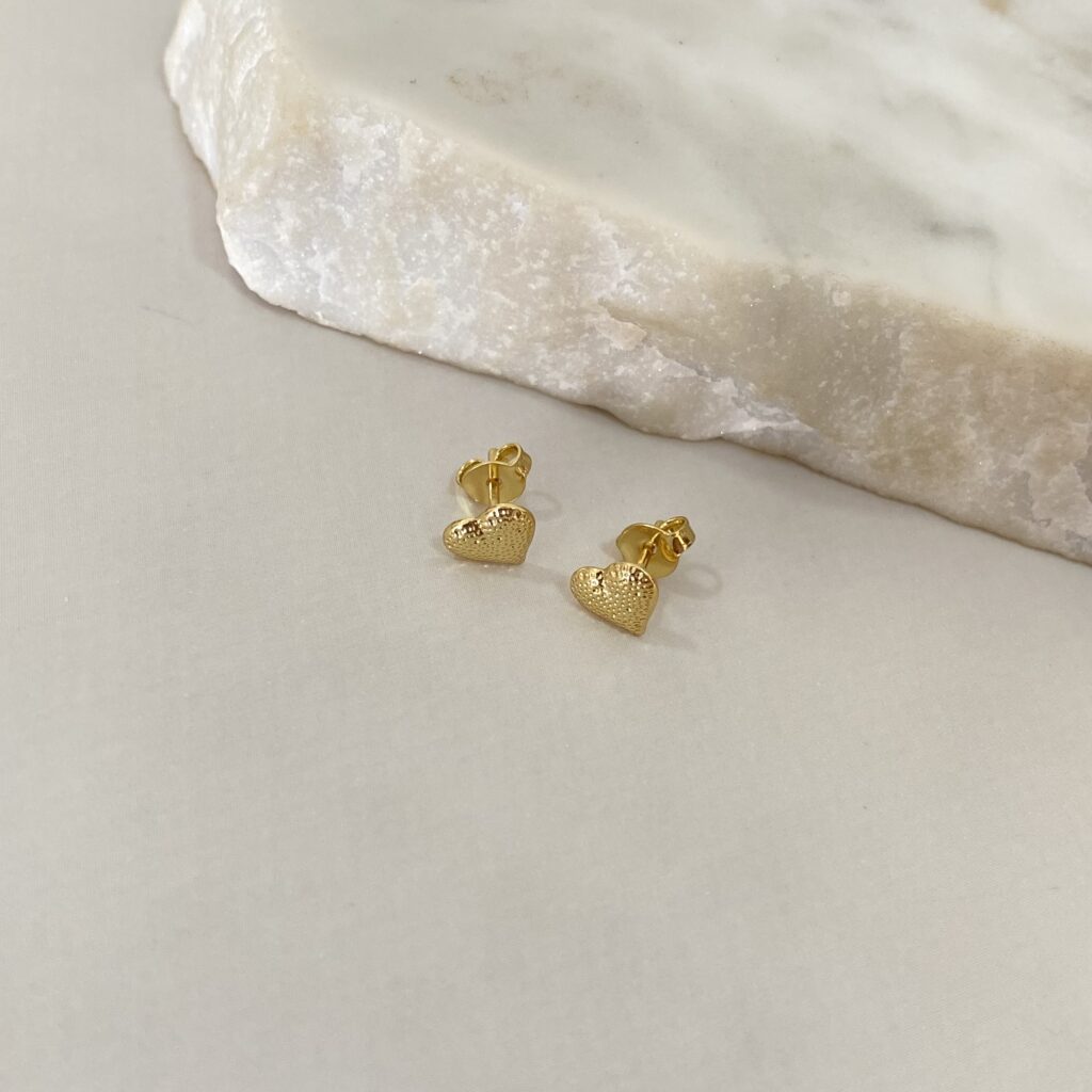 Aro mini corazon puntillado. Bañado en oro 18k y un año de garantia
