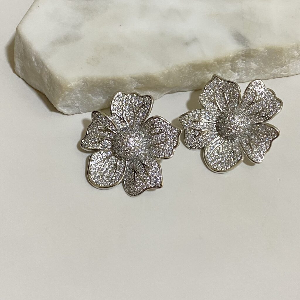 Aro formato de flor grande toda tachonada. Bañado en oro 18k y un año de garantia