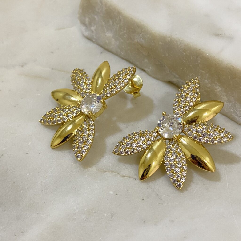Aro media flor con pétalas lisas y tachonadas con zircônia en centro