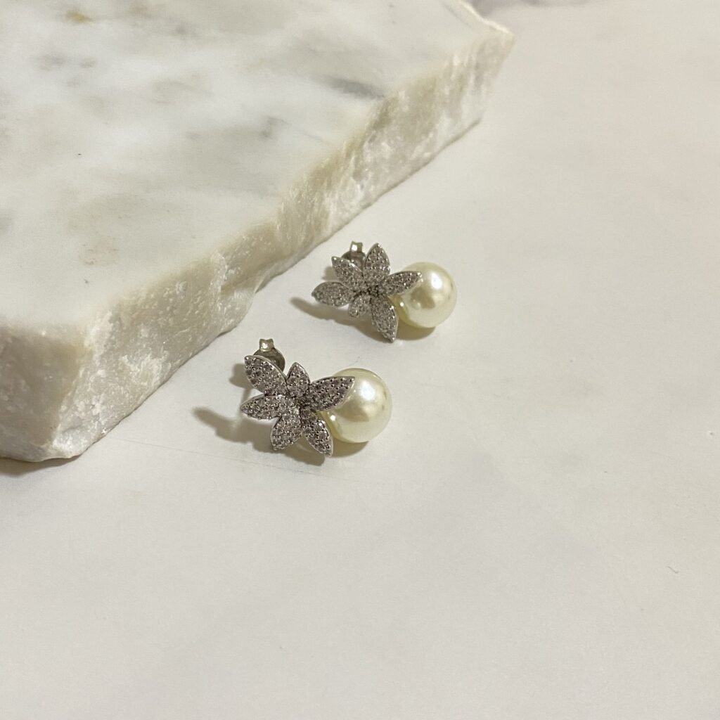 Aro media flor tachonada con perla. Bañado en oro 18k y un año de garantia