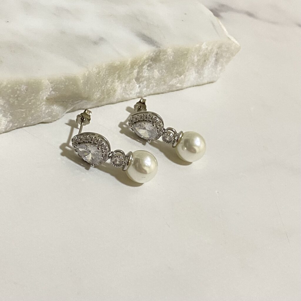 Aro con una gota de zirconia y perla colgante. Bañado en oro 18k y un año de garantia