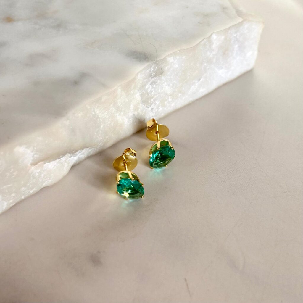 Aro oval verde mediano. Bañado en oro 18k, con un año de garantia.
