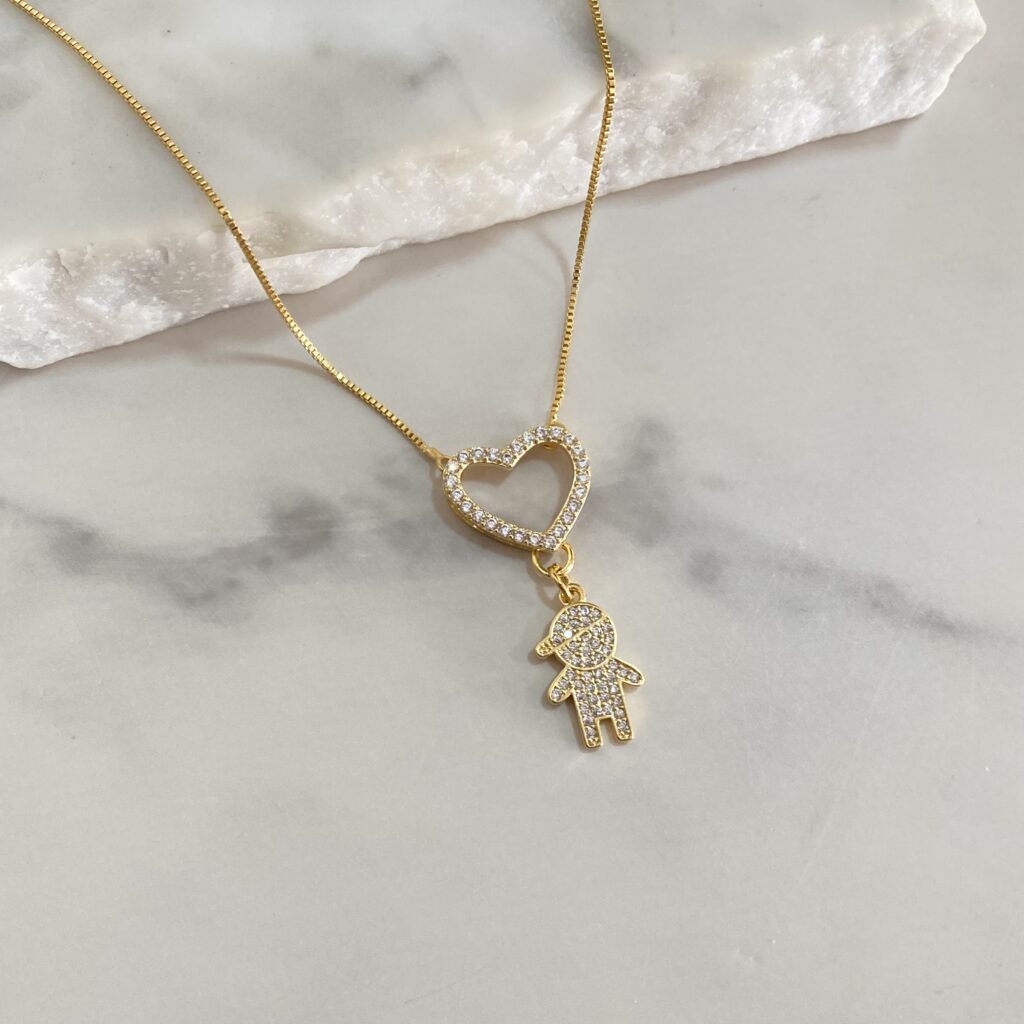Collar niño/niña corazón tachonado G. Bañado en oro 18k con 1 año de garantía.
