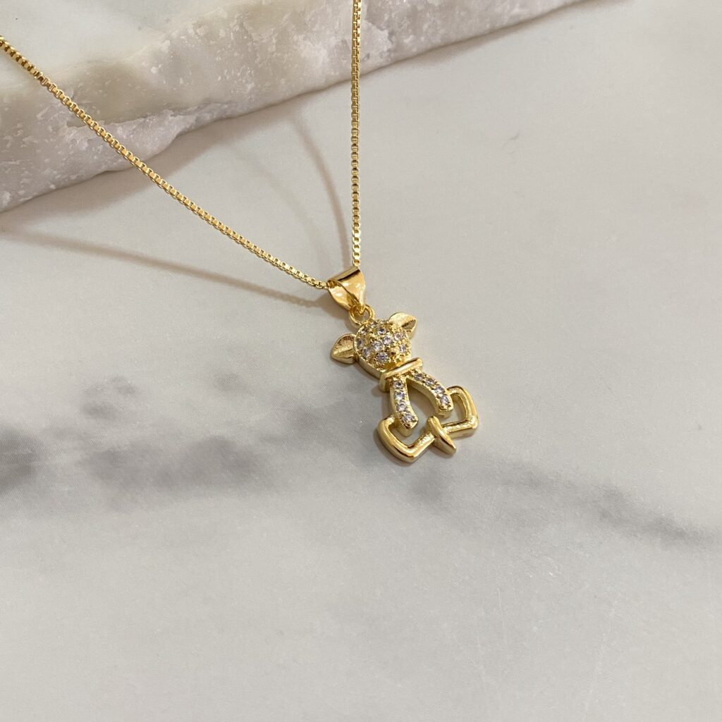 Collar perrito tachonado. Bañado en oro 18k con 1 año de garantía.