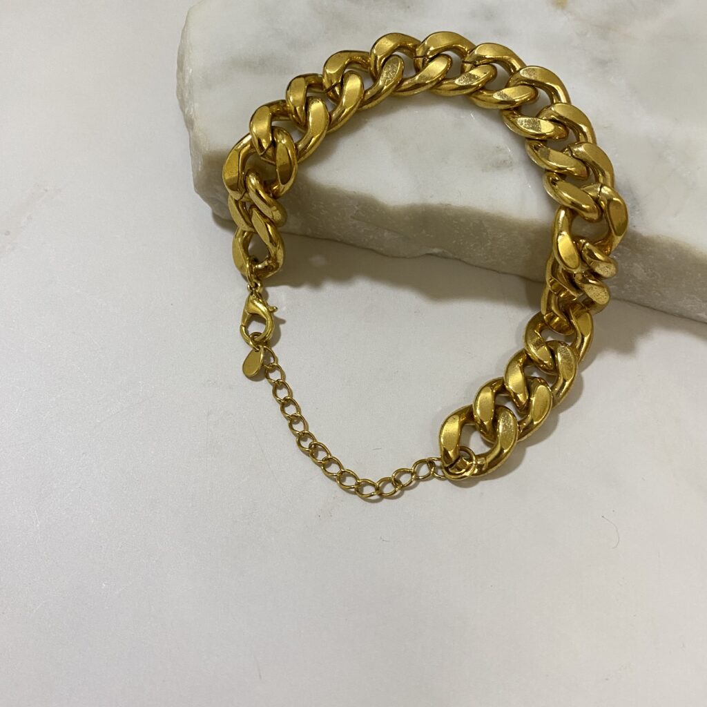 Pulsera elo Cadena gruesa con extensor bañado en oro 18k y un año de garantía