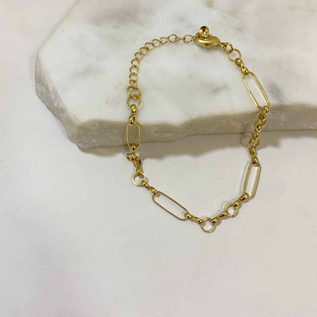 Pulsera elos vazados con extensor bañado en oro 18k y un año de garantía