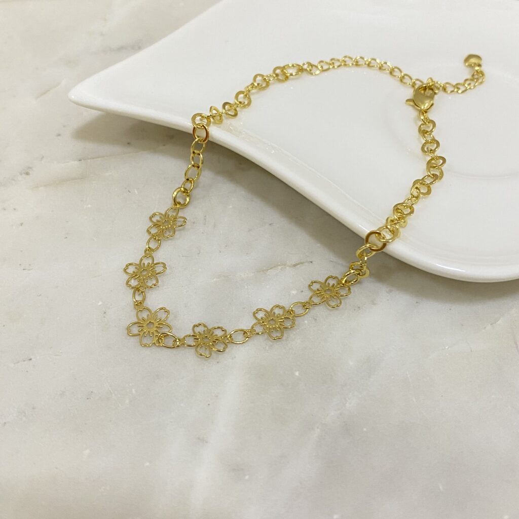 Pulsera con 6 florcitas delicadas bañada en oro 18k
