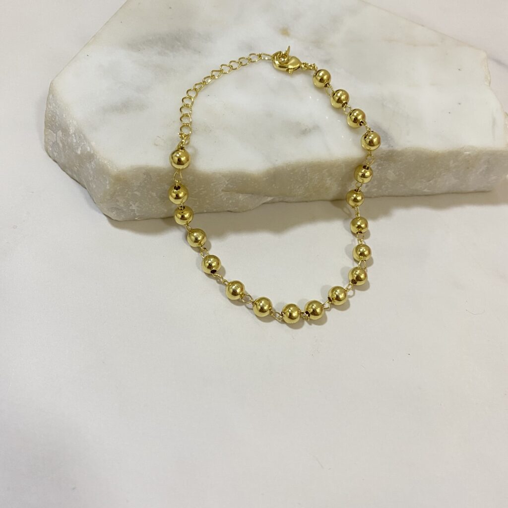 Pulsera pelotitas lisas pegadas con extensor bañada en oro 18k y un año de garantía